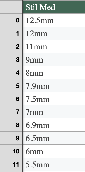 Sizes (in mm): 13mm ,11mm, 10mm, 8mm, 7mm.